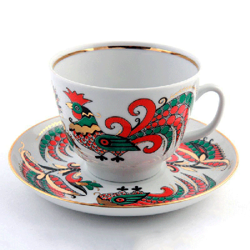 Чашка с блюдцем чайная, рис. "Красные петушки" 250 мл (форма "Весенняя ")